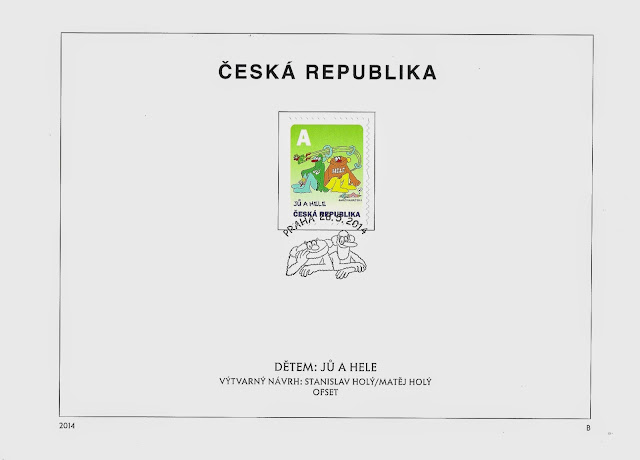After a booklet dedicated to the popular cartoon "Čtyřlístek" by Jaroslav Němeček in 2012 and another one devoted to the Little Mole "Krteček" by Zdeněk Miler in 2013, the Czech Post has issued, on May 28, 2014, a new booklet (10 stamps) featuring this time the two puppets Jů and Hele by the Czech artist, illustrator and cartoonist Stanislav Holý (1943-1998).