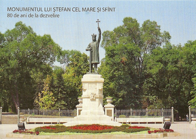 The other side of this postal stationery above shows that same monument featuring Stephen the Great in his Prince's clothes, with a cross in left hand and a sword in the other hand.