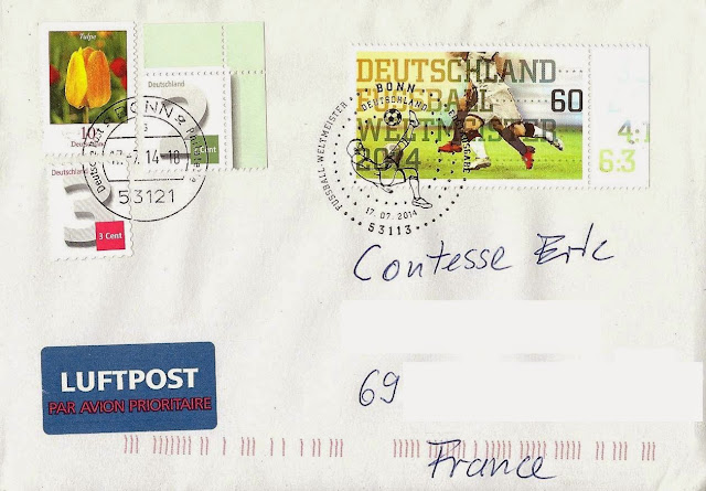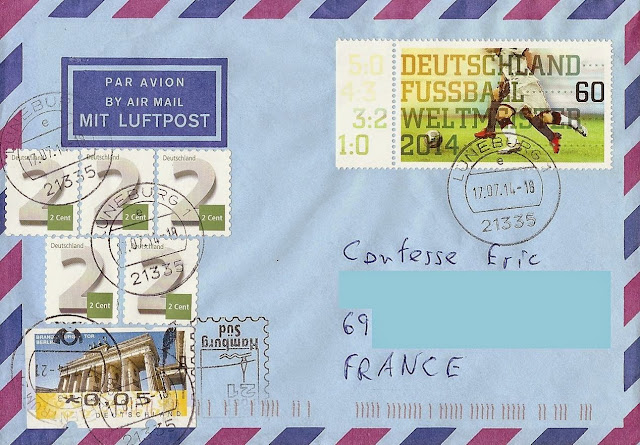 J'ai eu la chance de recevoir les 2 plis ci-dessus et ci-dessous postés le 1er jour d'émission respectivement de Lüneburg et d'Essen. Merci beaucoup Lars et Igor :-)