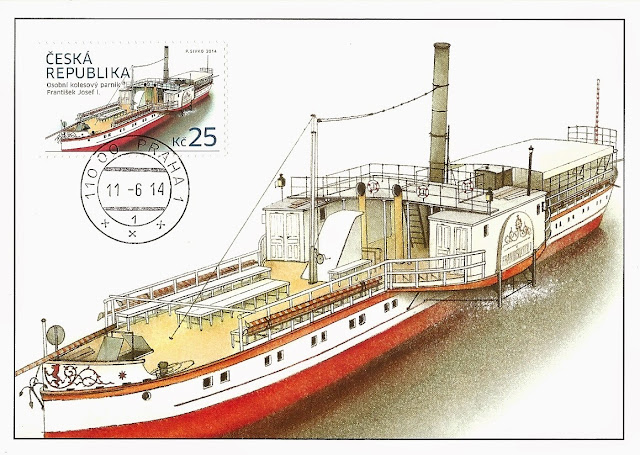 The first FDC above relates to the stamp (design : Pavel Sivko) depicting the largest of the six paddle steamboats built in Prague at the end of the 19th century, the Franz Joseph I.
