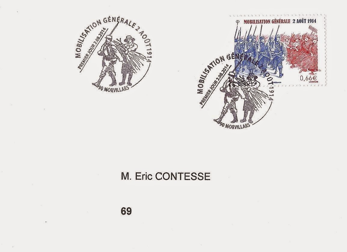 To commemorate the centennial of this general mobilization that marked the beginning of one of the worst tragedies of the 20th century, the French Post has issued in preview sale on August 2, 2014 a special stamp (€ 0.66, print run : 1.3 million).
