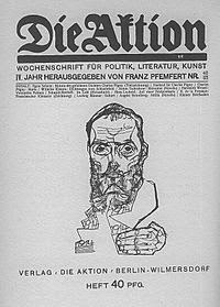 That stamp, engraved by Claude Jumelet, was designed from a drawing by Austrian artist Egon Schiele, published in 1914 in the German magazine "Die Aktion" (see below).