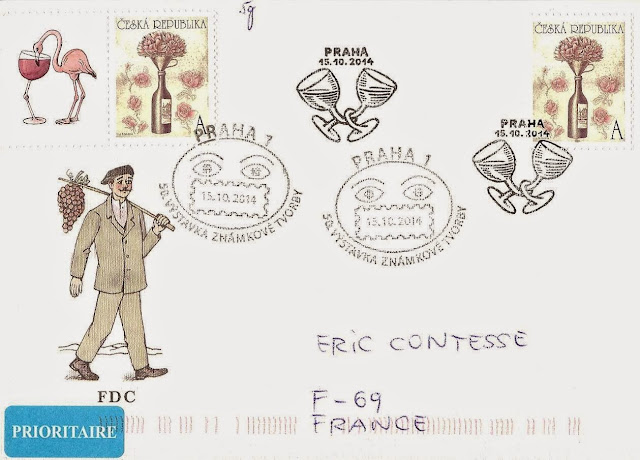 A big thank you Bret for this FDC above regarding that stamp, with a postmark from Prague featuring two interwined glasses of wine...