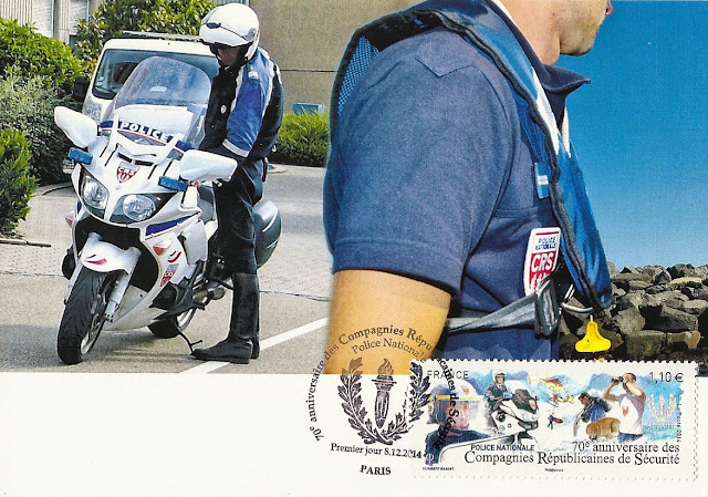 A big thank you Joël for this interesting maxicard above, with FDC postmark from Paris, showing police members of these CRS today.