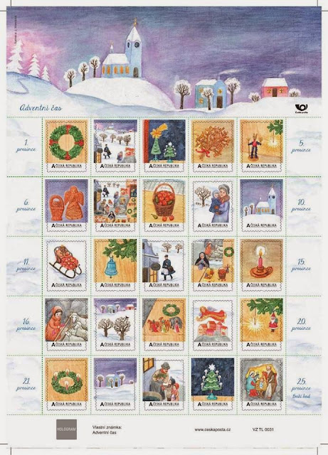 Ces 25 timbres (tarif permanent 'A', conception : Jarmila Marešová), émis dans un même feuillet (tirage : 16000), sont consacrés à la période de l'Avent, chaque timbre évoquant un jour du mois de décembre (du 1er au 25).