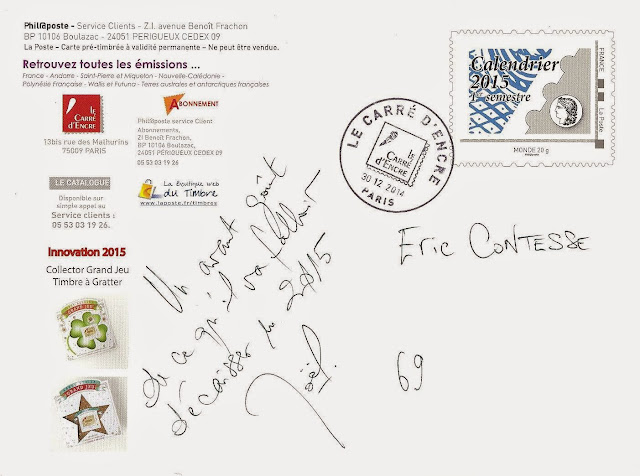 A noter, en bas à gauche, un avant-goût d'une "innovation" de Phil@poste pour 2015 : un collector incluant des timbres à gratter...