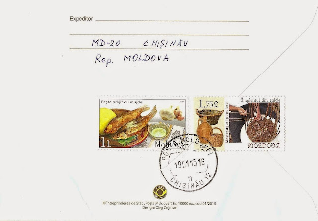 I again received this envelope (design by Oleg Cojocari) this time with a special postmark from Chisinau of January 19, 2015 specifically devoted to the 100th anniversary of the birth of Victor Gherlac. Thank you very much Nicolae :-)