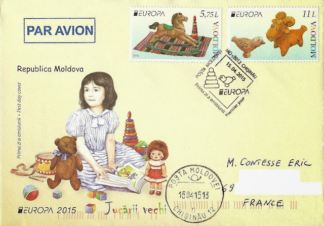 On April 15, 2015, the Post of Moldova issued a nice set of two EUROPA stamps, having for theme this year the old toys ("Jucării vechi" in Romanian).