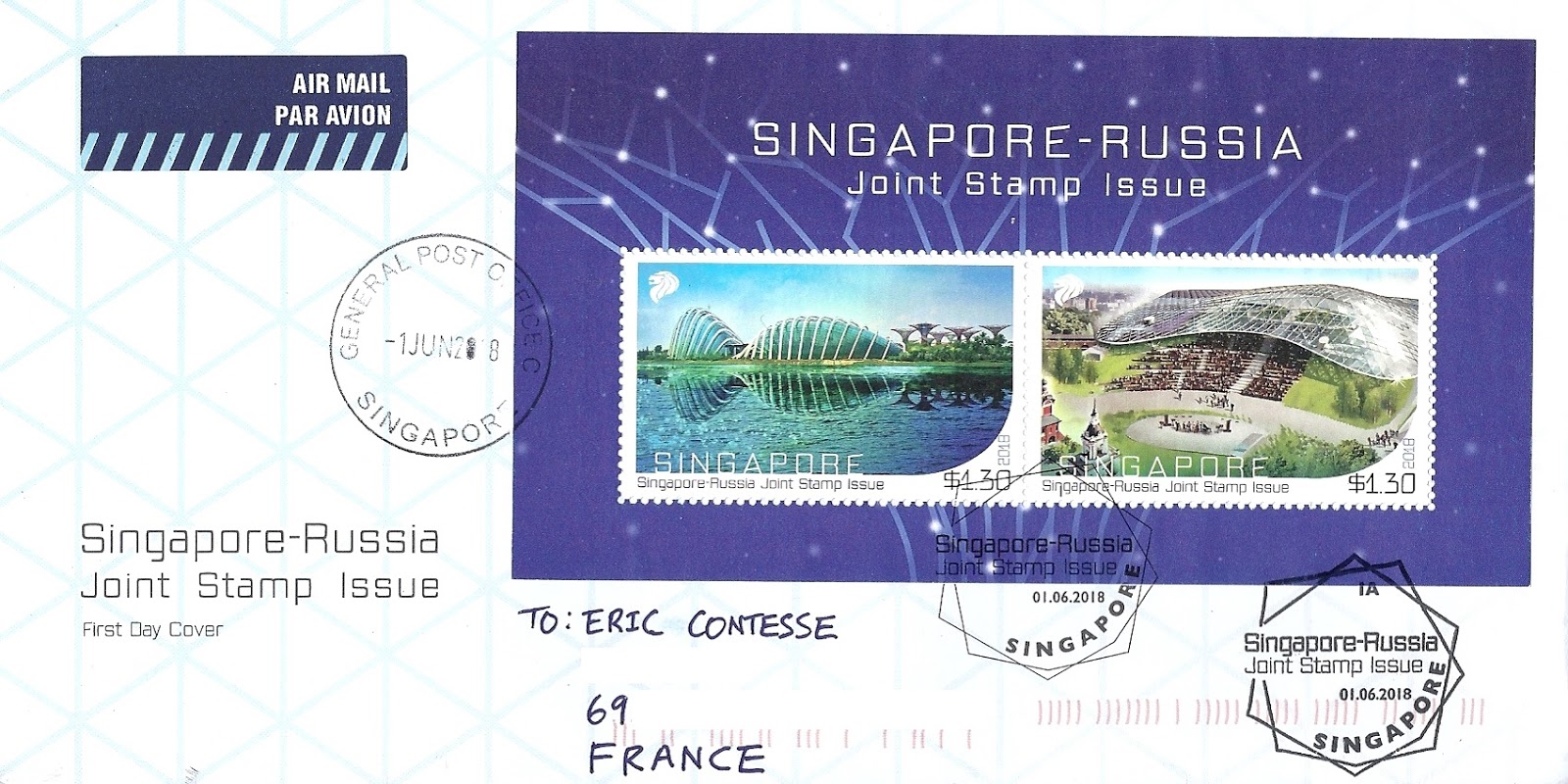 In order to celebrate the 50th anniversary of these diplomatic relations, the 2 countries put into circulation, on June 1, 2018 for the SingPost and on June 25, 2018 for RusMarka, a joint series (2 stamps) devoted to modern architecture.