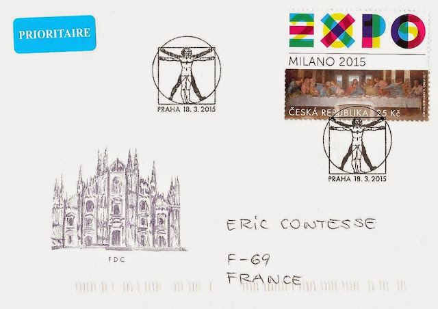 On this letter above, mailed from Brussels on March 31, 2015, Jacques (thank you so much !) chose the Belgian same design's stamp (rate "Europe 1" i.e. € 1.10 from 5 stamps puchased).