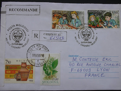 C'est le premier courrier que je reçois depuis que le Montenegro s'est séparé, par referendum le 21 mai 2006, de la Serbie. D'où uniquement "Srbija" figurant sur les 5 timbres à 100 Dinars, émis en 2007.