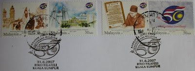 The stamp of right-hand side (0,55€), issued on May 4, 2006, represents one of the 32 German UNESCO World Heritage sites : the Upper Middle Rhine valley, registers since 2002.