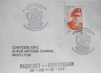 The €0.54 stamp was issued on January 16, 2008 by the French Territorial Collectivity of Saint-Pierre and Miquelon, located off the coast of Newfoundland in Canada. The "1st Day" was logically held in Saint-Pierre, but also in Ouistreham, in Normandy (France) !