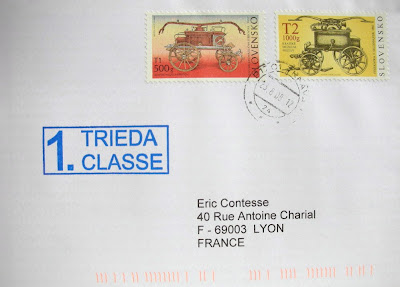 Une fois n'est pas coutume, les 2 timbres slovaques sur la 1ère lettre ci-dessous ne sont pas des timbres gravés !