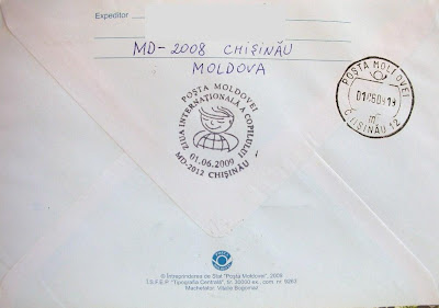 It's worth noting the three different postmarks on this letter : a nice FDC cancellation devoted to this set of stamps, a standard postmark from Chisinau and an other postmark specifically issued to commemorate the International Children's Day.