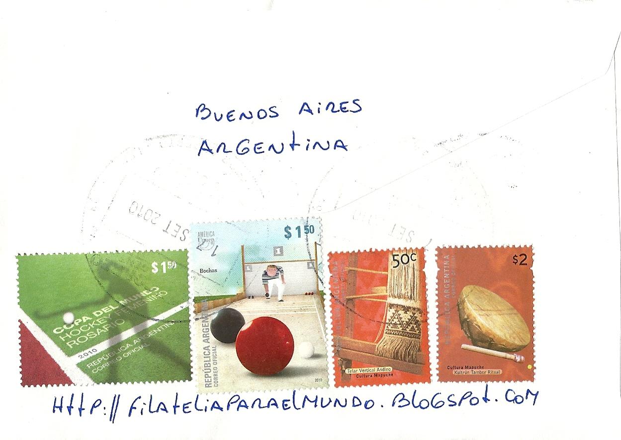 This set of two stamps is included in the upper left on this beautiful cover below mailed on September 17, 2010 from Buenos Aires. Thank you very much Viviana :-)