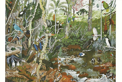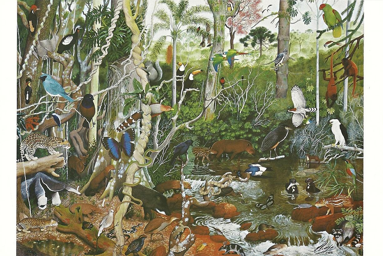Here is above the other side of this postal stationery, reproducing a painting (who is the artist ?) dating from 1986, on which are featured many species (fauna and flora) living in Argentina.