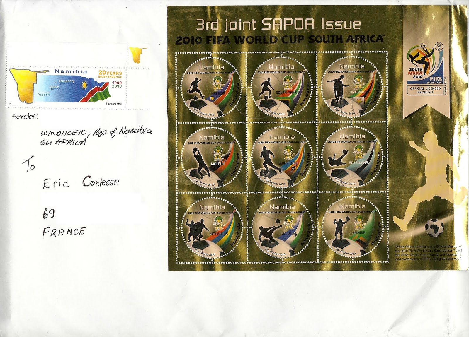 Première coupe du monde de football organisée sur le continent africain oblige, 9 pays membres de la SAPOA ("Southern Africa Postal Operators Association") ont émis, le 9 avril 2010, une série de 9 timbres communs consacrés à cet évènement sportif planétaire.