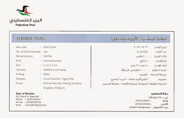 "Euromed Postal" joint stamp issue from Palestine