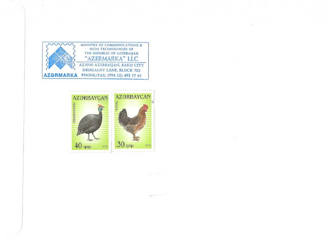 Après une lettre publiée sur ce blog affranchie avec la version biélorusse du bloc-feuillet commun Belarus-Azerbaïdjan émis le 3 décembre 2015, j'ai eu la chance de recevoir cette fois cette jolie lettre envoyée en recommandé le 28 janvier 2016 de Bakou, incluant ce même bloc-feuillet émis par la poste azerbaïdjanaise.