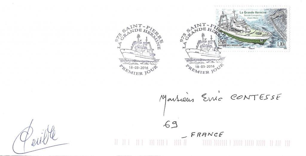 After the "Victor Pleven" (commissioned in 1971) in 2015, it is another trawler belonging to the French company Comapêche ("Compagnie des Pêches"), the "Grande Hermine", which is featured on the new stamp issued on March 18, 2016.