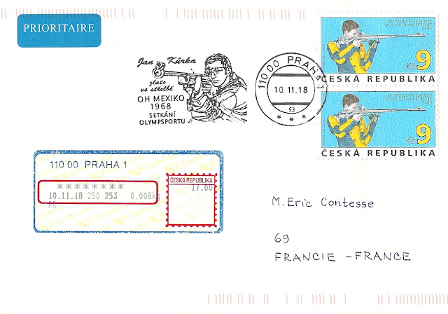 A l'occasion d'une réunion d'Olympsport, l'association nationale tchèque pour la philatélie autour du thème du sport et de l'olympisme, organisée à Prague le 10 novembre 2018, une nouvelle flamme postale a été mise en circulation, consacrée au 50ème anniversaire de la médaille d'or de Jan Kůrka aux jeux olympiques de Mexico 1968, dans l'épreuve de pistolet à 50 m position couchée.