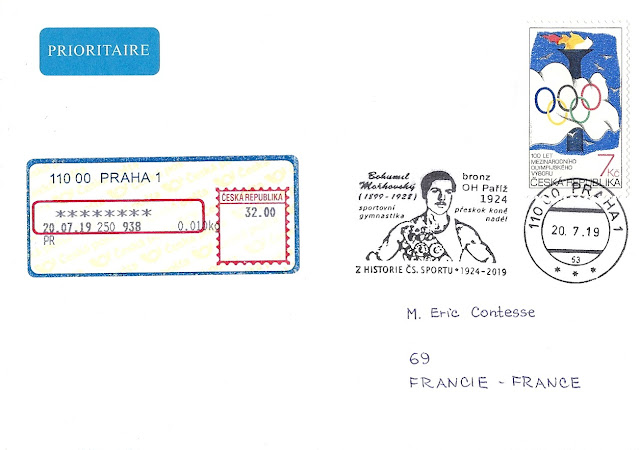 Cette flamme postale, émise dans le cadre d'une série consacrée à l'histoire du sport tchèque et tchécoslovaque, a été appliquée sur la jolie lettre ci-dessous. Merci beaucoup Slavek !