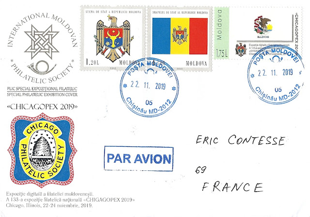 Thank you Niall for sending this 2nd commemorative envelope above, sent on November 22, 2019 from Chișinău, evoking the digital participation of Moldovan philately at the "CHICAGOPEX 2019" exhibition!