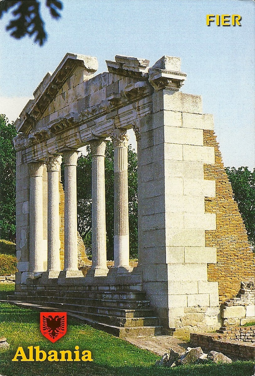 This postcard is dedicated to the ancient Greek city of Apollonia founded in the 6th century BC and located today near the Albanian town of Fier (center-west of the country).