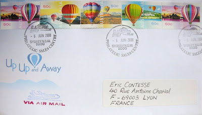 The 20c stamp is also part of the Nature of Australia set consisting of 4 stamps issued on April 10, 1997, devoted to the wetlands of the Kakadu National Park, located in the Northern Territory. This Park is one of the 25 sites in the world to be both classified as a cultural and as a natural heritage site by UNESCO since 1981. The Park is inhabited by humans (aboriginal territory) for more than 40.000 years and is home to many rare or endemic species such as Saltwater Crocodile (Crocodylus porosus), the largest living reptile, on this stamp. It's the same Crocodile that also appears on the two 30c stamps issued on March 10, 2004 with 2 other values. I've already mentioned in a previous post the "Air Balloon" on the left. The last 50c stamp is one of the 3 stamps issued on March 4, 2008 to announce the holding of the World Youth Day (WYD), an event organized by the Catholic church, in Sydney from 15 to 20 July 2008. On this occasion, Pope Benedict XVI will make his 1st visit to Australia and nearly 500.000 people are expected at the final Mass in his presence at Randwick Racecourse. The stamp shows the Pope greeting during a Mass and is the first Australian stamp representing a foreign head of state. The Australia Post has put up for sale on this occasion two FDC with the same stamp in a 9 carat gold version (500 copies at $129.95) and in a sterling silver version (5000 copies at $29.95) ! Note that Australia Post very often shows living people on its stamps through its "Australian Legends" series or its athletes...