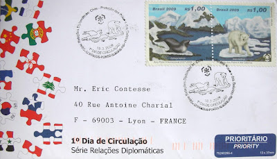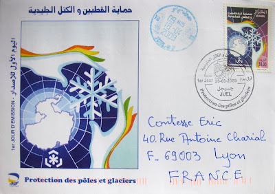 I'm very happy today because the cover below allows me to show you a new specimen of the international awareness series for the Protection of the Polar Regions and Glaciers.
