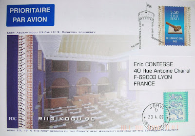 J'en profite pour vous faire partager ci-dessus le dernier FDC émis le 23 avril 2009 par la poste estonienne. Merci beaucoup Kristiina :-)