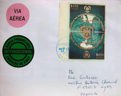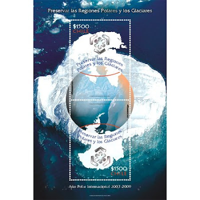 Here is today a new country in my list of postal administrations having issued some stamps as part of the international campaign for the protection of the polar regions and glaciers ("Preservación de las regiones polares y los glaciares" in Spanish).