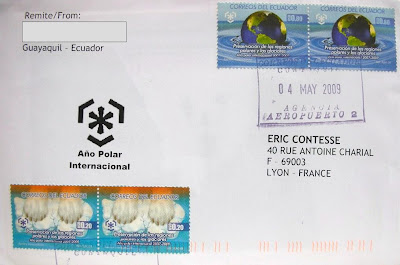 Merci beaucoup John pour cette lettre postée le 4 mai 2009 de l'agence postale de l'aéroport de Guayaquil :-)
