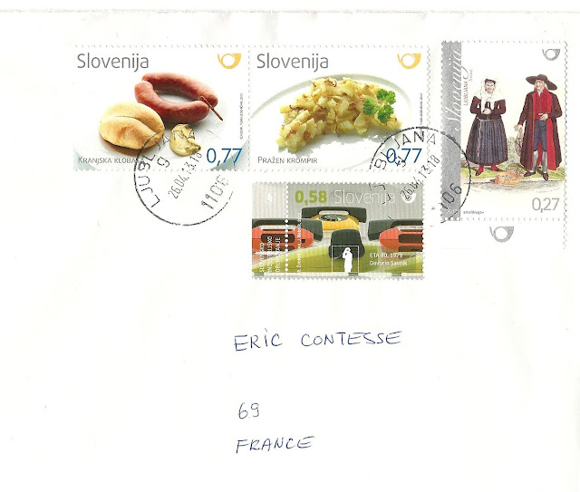 The Slovenian version of that stamp (€ 0.60) appears to the left on the nice cover above, sent on July 19, 2016 from Ljubljana. Thank you very much Petra !